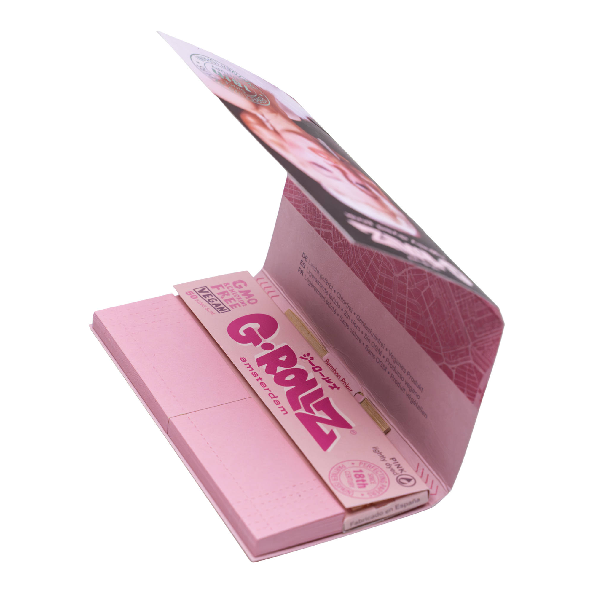Папиросная бумага G-ROLLZ - 'Fabulous Face' Lightly Dyed Pink KS Slim Papers + Tips & Tray