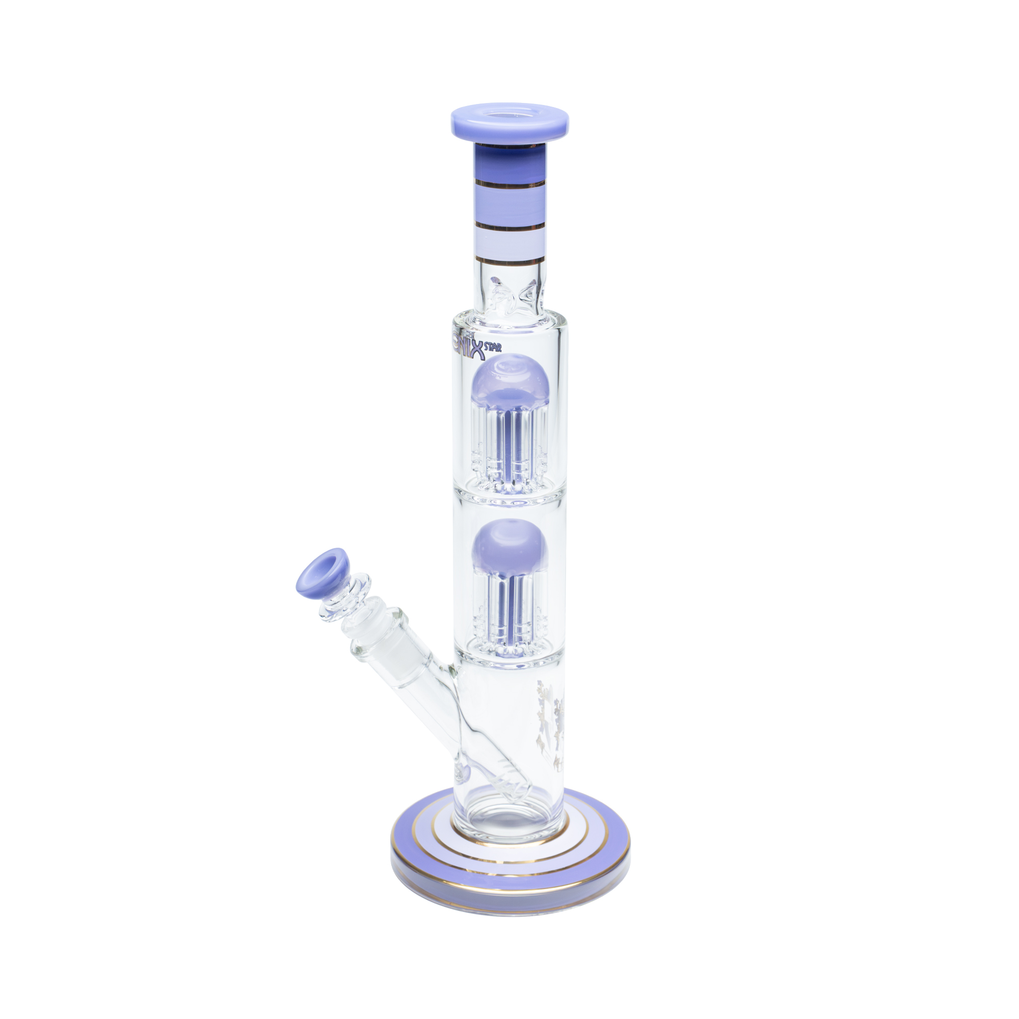 Бонг PhoenixStar - PHX572 Double 8 arms percs Milk Purple (H:35.1cm)