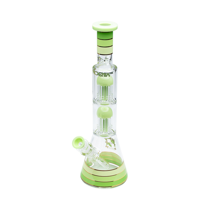 Бонг PhoenixStar - PHX573 Double 8 arms percs Milk Green (H:35.1cm)
