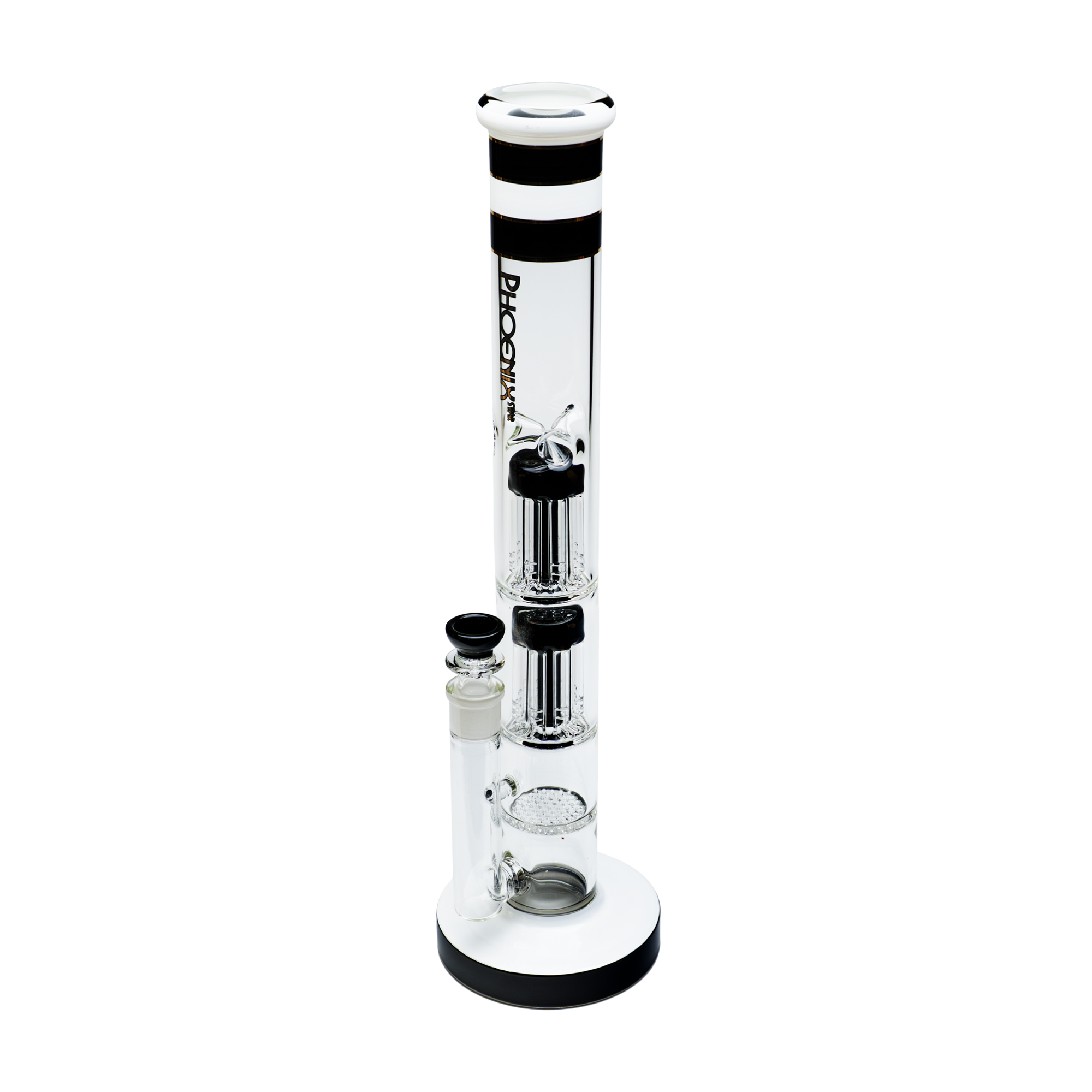 Бонг PhoenixStar - PHX502 Double 8 arms perks + Honeycomb perk Black (H:43.2cm TH:50*7mm)